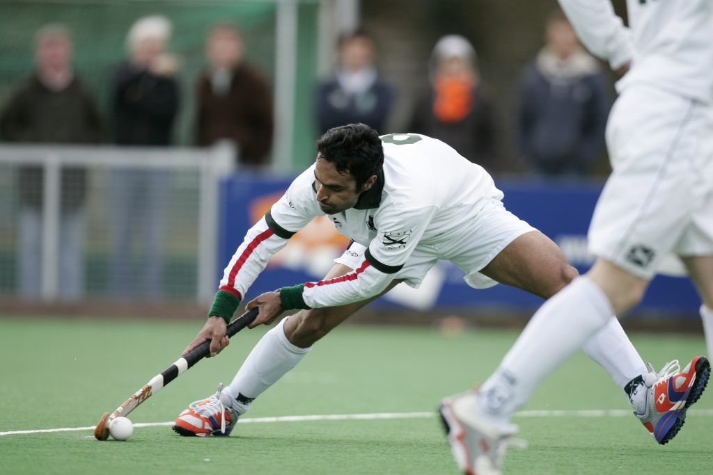 De corner van Sohail Abbas: verwoestend hard. (foto: KNHB)