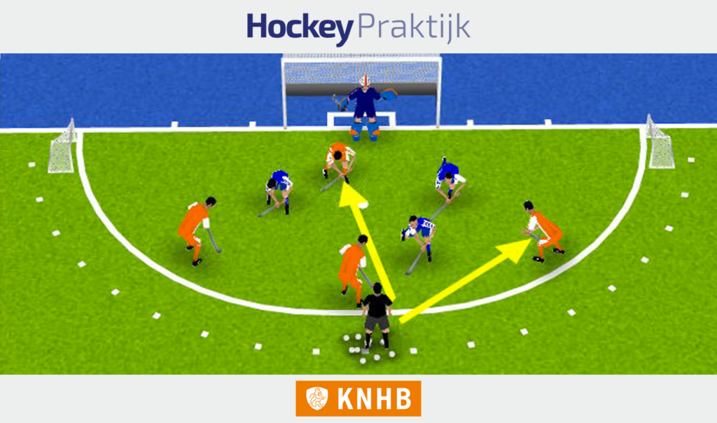 • Wissel wijze van aanspelen (vlakke bal, stuitbal, hoge bal in de vrije ruimte, op de keeper).