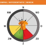 push naar links (W-NW). Om de moeilijkheidsgraad in het kompas weer te geven, wordt er