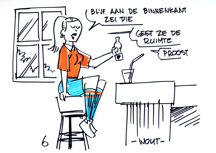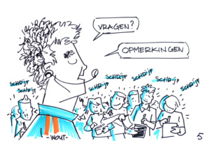 Tijdens de bijeenkomst was tekenaar Wout Paulussen aanwezig om – gewapend met potlood en grote vellen papier – te ‘notuleren’ wat er gebeurde. De tekeningen geven een mooie indruk van de dag: