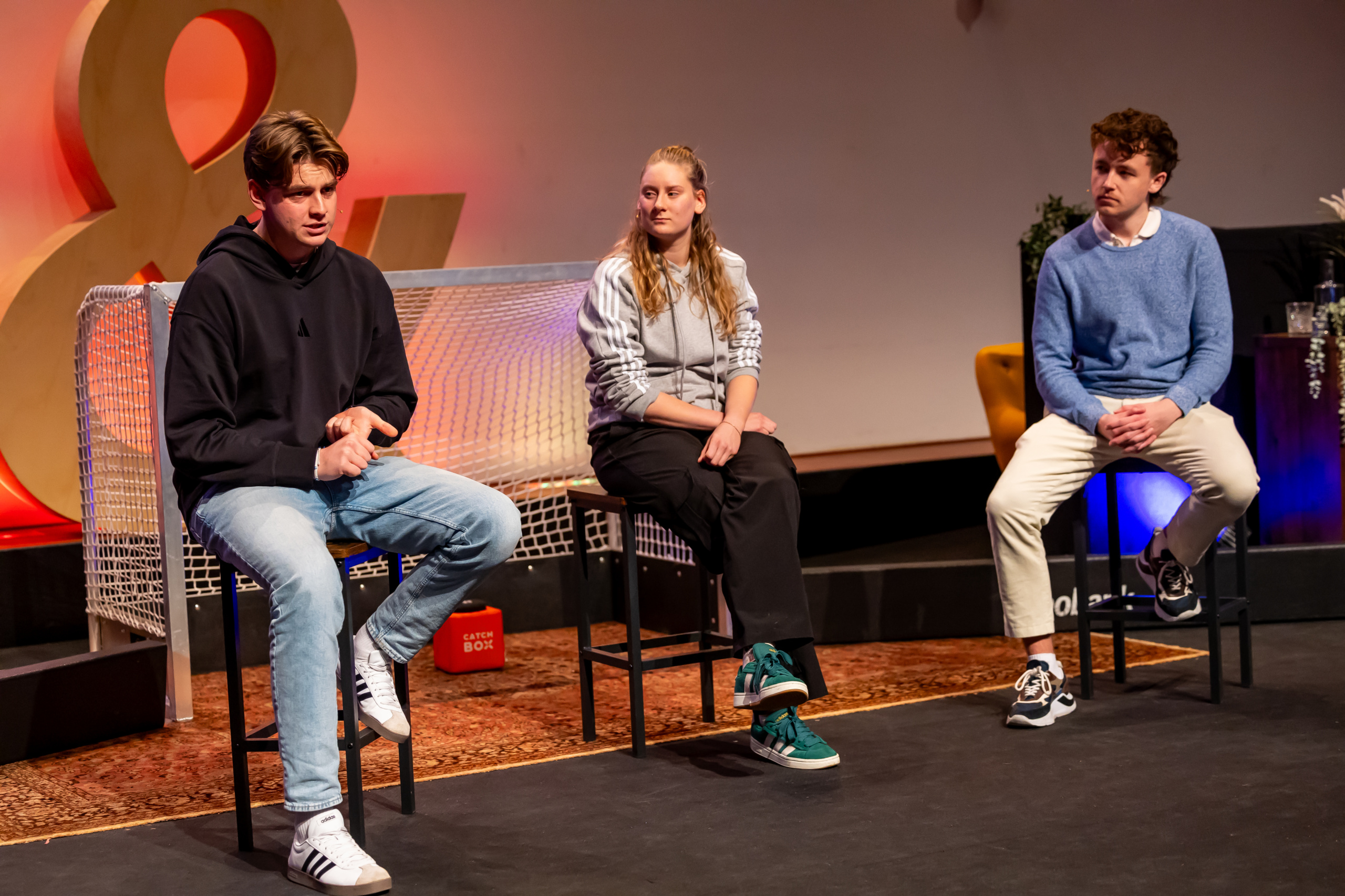 De aanwezigen van het Nationaal Hockeycongres waren aanwezig bij een primeur: de eerste live opname van Podje Hockey, dé podcast van de KNHB waarin sport, inspiratie en kennis samenkomen.