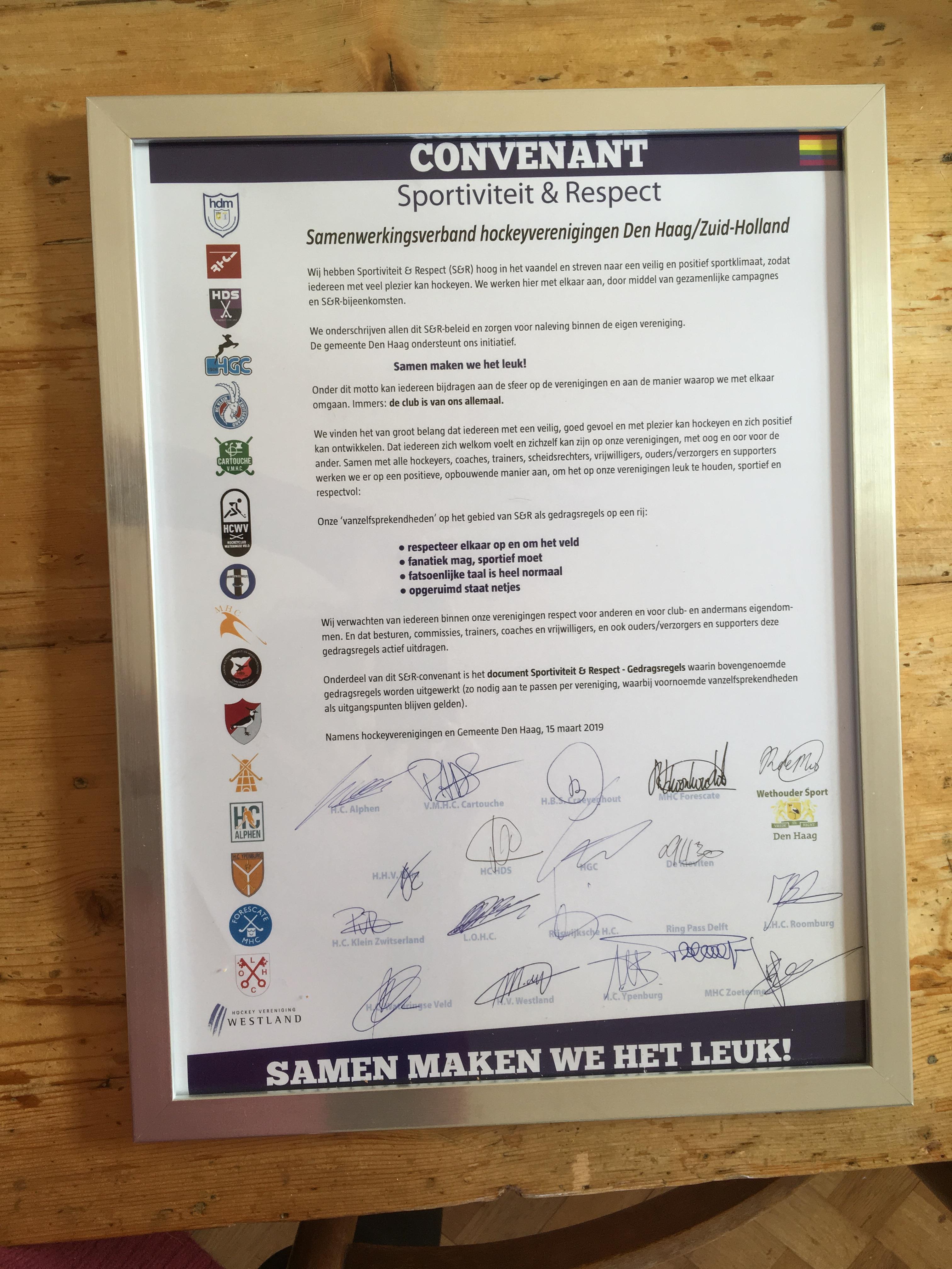 *De verenigingen die het convenant hebben getekend zijn: HGC, Klein Zwitserland, Westland, HDS, Craeyenhout, Roomburg, LOHC, Wateringse Veld, Ypenburg, Alphen, Cartouche, Forescate, De Kieviten, Ring Pass, Delft, Rijswijk, Zoetermeer en hdm!