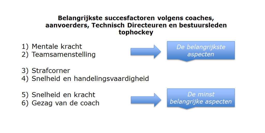 De Batavieren, de officiële vereniging van oud-hockeyinternationals, presenteerde op het WK 2014 in Den Haag de uitkomsten van een onderzoek naar het begrip ‘mentale weerbaarheid’ en de invloed ervan op topprestaties (zie afbeelding hieronder). Hun conclusie was dat mentale krachten van doorslaggevend belang zijn bij het winnen van grote toernooien. Belangrijker nog dan spierkracht, sprintsnelheid, de strafcorner en de autoriteit van de coach. Maar wat is mentale weerbaarheid eigenlijk? En kun je het trainen? In dit artikel geeft Bas Bruin inzicht in diverse aspecten die hierbij een rol spelen. Tevens geeft hij een aantal praktische tips voor trainer/coaches hoe hiermee om te gaan.