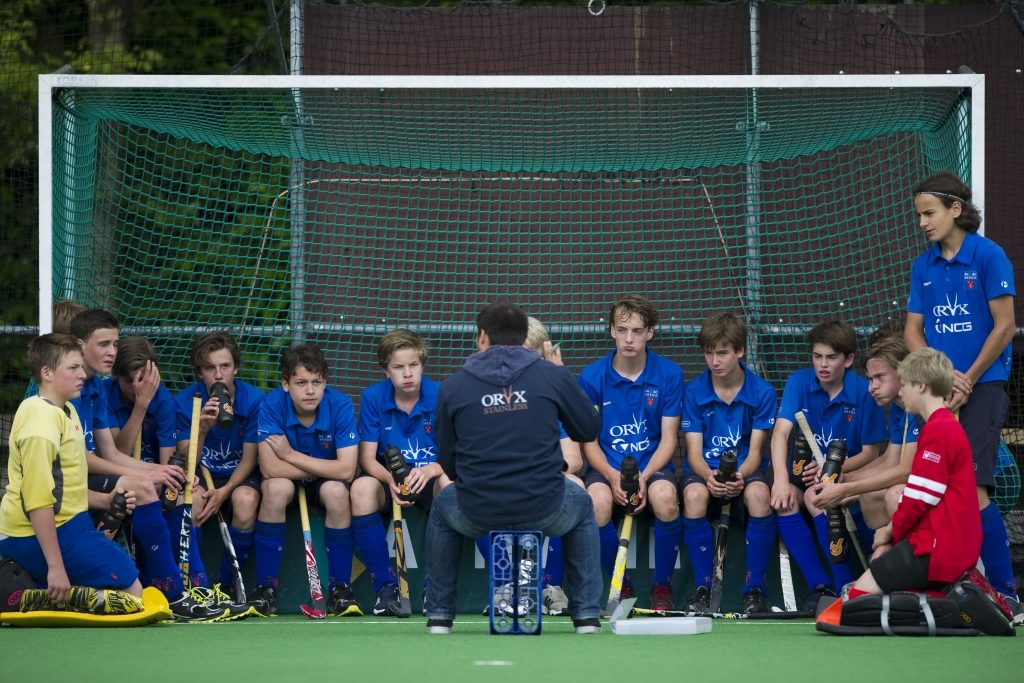 Uitleggen dat een kind in verschillende linies moet leren hockeyen en op verschillende posities. (foto: KNHB/Willem Vernes)