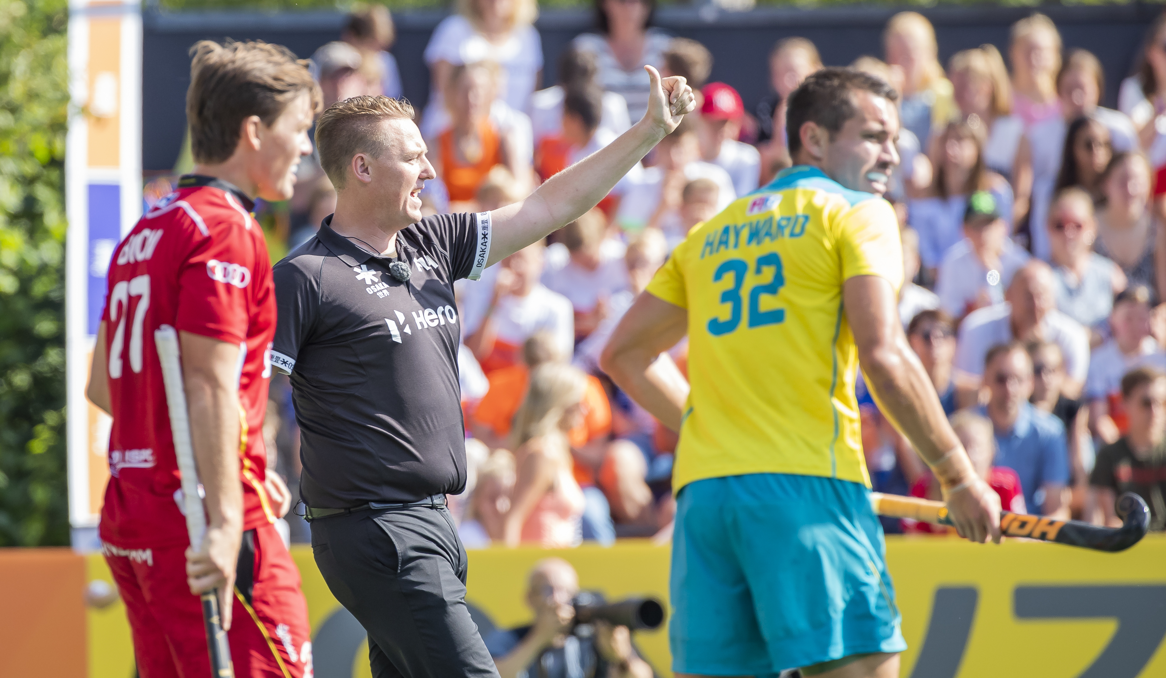 De VAR is inmiddels ruim 12 jaar in het hockey en we blijven iedere keer weer schaven aan de reglementen rondom de VAR. Ook dit jaar is er weer een kleine toevoeging gekomen in het video umpire reglement: wanneer een scheidsrechter een overtreding niet heeft gezien en een team vraagt een VAR-beoordeling aan, dan kan deze nu ook aangeven of er, naast de spelstraf, ook een persoonlijke straf gegeven moet worden. Dit heb ik meegemaakt in de halve finale van de FIH Pro League tussen Australië en Groot Brittannië. De verdediger maakte bij een strafcorner een opzettelijke overtreding op een aanvaller. Deze overtreding was mij volledig ontgaan, maar de Britten vroegen wel de VAR aan. De VAR gaf aan dat er een overtreding was en zij adviseerde mij een persoonlijke straf. Dit is een te algemeen advies. Vanaf dit seizoen is het dus mogelijk om als VAR ook meteen aan te geven welke persoonlijke straf je dient te geven.