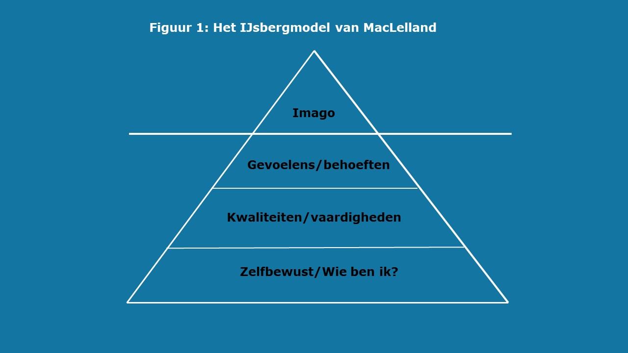 Om deze (on)zichtbaarheid te verbeelden heeft de Amerikaanse psycholoog David MacClelland het ijsbergmodel ontwikkeld (figuur 1). Dit model staat symbool voor wat wij wel en niet laten zien als mens.