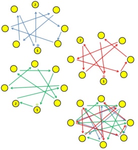 De groep spelers staat in een ruime kring. Elke kleur bal staat voor een bepaald patroon. Deze patronen dienen vooraf duidelijk kenbaar besproken te worden. Het uiteindelijke doel is om de drie patronen gelijktijdig uit te voeren.
