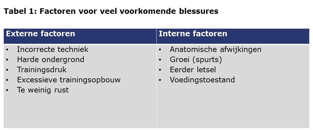 De verandering van de motoriek is ook één van de oorzaken bij het ontstaan van blessures. De overige factoren voor blessures bij kinderen zijn weergegeven in onderstaande tabel 1.