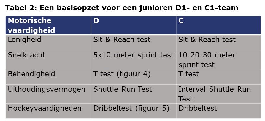 In tabel 2 vind je een basisopzet voor een junioren D1- en C1-team.