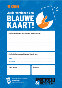 Met de Blauwe Kaart geven thuisspelende teams de tegenstander na de wedstrijd een compliment. Download de blauwe kaart hier.