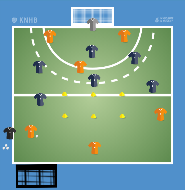• Oranje speelt tegen blauw met aanvalsrecht.