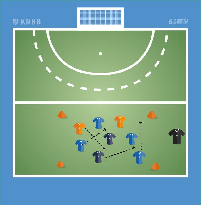 Alle kinderen bewegen op kindermuziek door het vierkant. Ze lopen, rennen, stampen, draaien rondjes, kruipen, springen en lopen op de hakken of de tenen. Ze mogen zelf kiezen uit de verschillende opties.