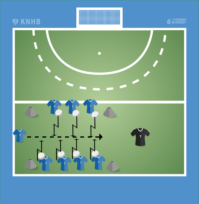 • Let op dat de kinderen niet te hard gooien of in de rechthoek komen te staan. Het overlopende kind mag de ballen afweren met de armen.