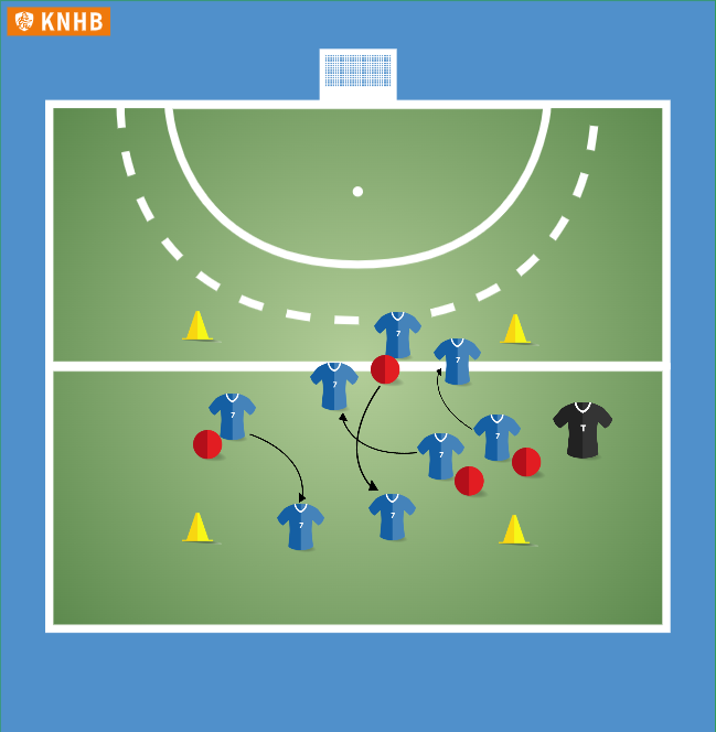 Kinderen doen allemaal hun schoenen uit en lopen op hun sokken. Het idee is dat ze zich alleen mogen voortbewegen door te glijden. Laat ze eerst hieraan wennen door in het vierkant vrij rond te mogen bewegen. Vervolgens maken ze tweetallen en gaan ze de bal overgooien, terwijl ze door het vierkant voortbewegen.