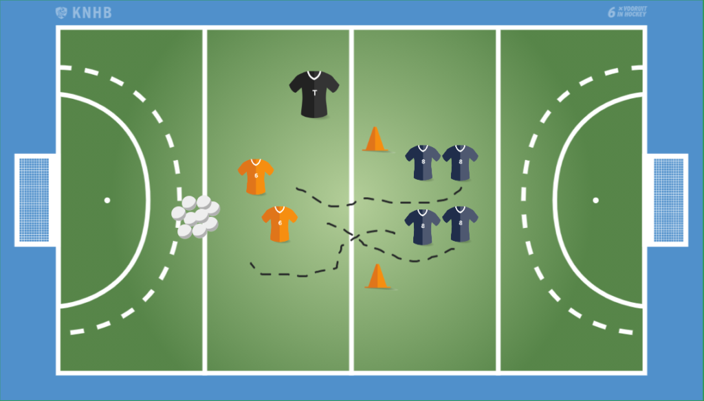Kinderen doen hun schoenen uit zodat ze kunnen glijden. Er zijn twee tikkers in het veld, die niet voorbij de oranje pylon mogen. De andere kinderen gaan zoveel mogelijk pittenzakken aan de overkant halen en terugbrengen. Als ze getikt worden, dan moeten ze terug naar de start. Is het gelukt om alle pittenzakken veilig te stellen, dan krijg je twee nieuwe tikkers.