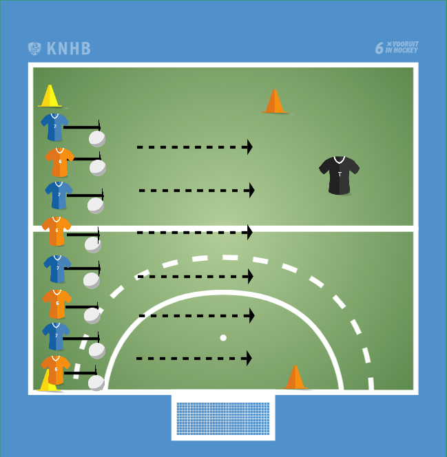 • Zorg dat ze dezelfde grip hebben als met een hockeystick, dus linkerhand boven en rechterhand halverwege.