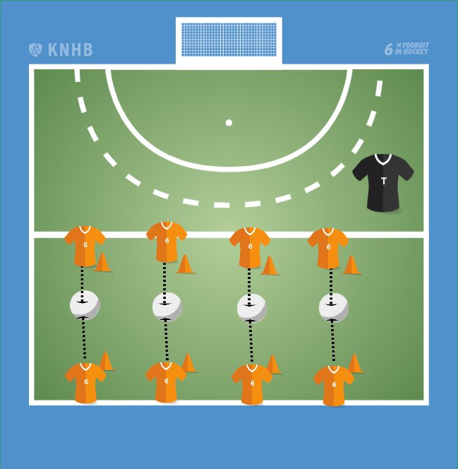 • Ze mogen best wat vrij in de ruimte bewegen, maar niet voorbij de pylon komen want dan komen ze te dicht bij de bal.