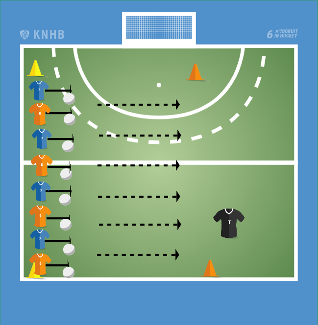 • Zorg dat ze dezelfde grip hebben als met een hockeystick, dus linkerhand boven en rechterhand halverwege.