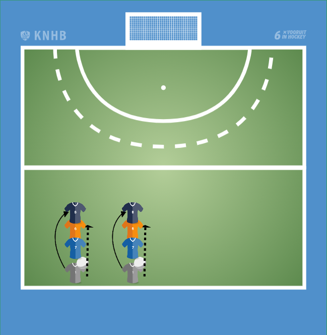 Vier kinderen staan in een rijtje achter elkaar met de benen wijd. Het achterste kind rolt een bal onder de benen door van de andere drie kinderen. Het achterste kind kruipt er vervolgens zelf achteraan. Zodra de bal en het kind onder de benen door gekropen zijn, wordt de bal doorgegeven naar wederom het achterste kind. Deze cyclus herhaalt zich.