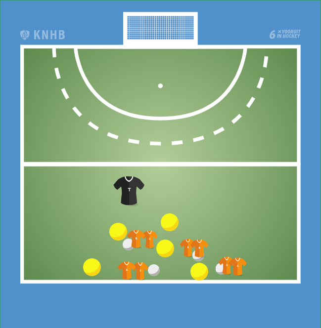 Alle kinderen lopen in tweetallen rond in de cirkel, waarin hoepels liggen. Eén kind loopt voorop met een bal in zijn/haar handen, het andere kind volgt. Het voorste kind legt de bal neer in één van de hoepels; degene die erachter loopt pakt de bal op en gaat voorop lopen. Tijdens het lopen mogen ze ook springen, kruipen, gorilla- of krablopen en gaan ze elkaar nadoen (de achterste doet de voorste na). Laat ze creatief zijn hierin.