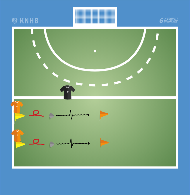 • Let op dat de stokken niet te hoog liggen, gebruik anders lagere pylonen.