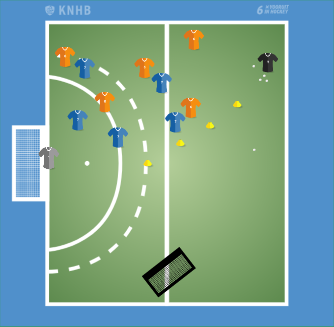 Maak het veld zoals op de afbeelding. Vorm 2 teams.