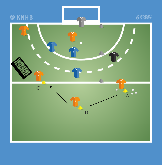 Maak het veld zoals op de afbeelding. Wijs 3 of 4 verdedigers aan.