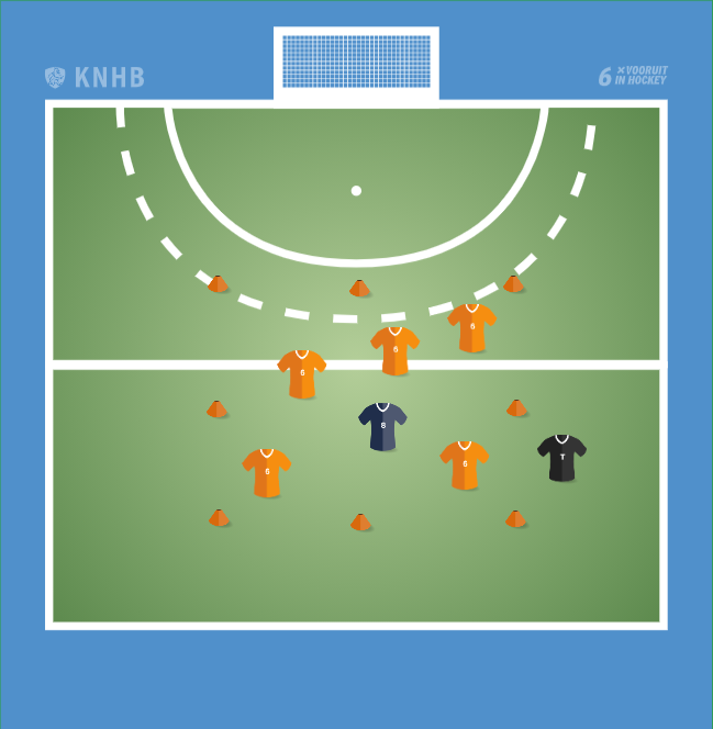 Maak een vierkant van 10 bij 10 meter en wijs 2 tikkers aan; laat de overige spelers zich in het vak verspreiden.