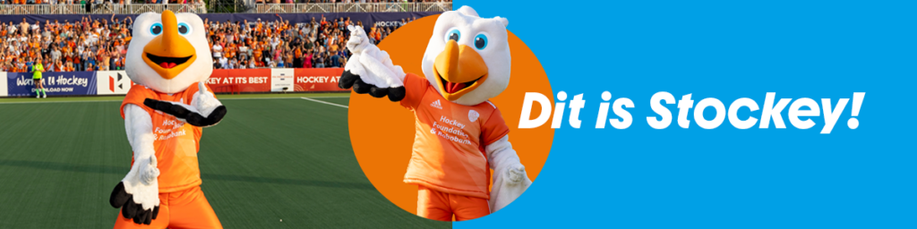 Stockey is de lieve en trouwe mascotte van OranjeHockey. Spelen de teams, dan is Stockey erbij. De ooievaar is populair bij de Oranjefans, maar vooral de grootste vriend van de jongste jeugd! Stockey is dol op het geven van high-fives aan Oranje supportertjes.