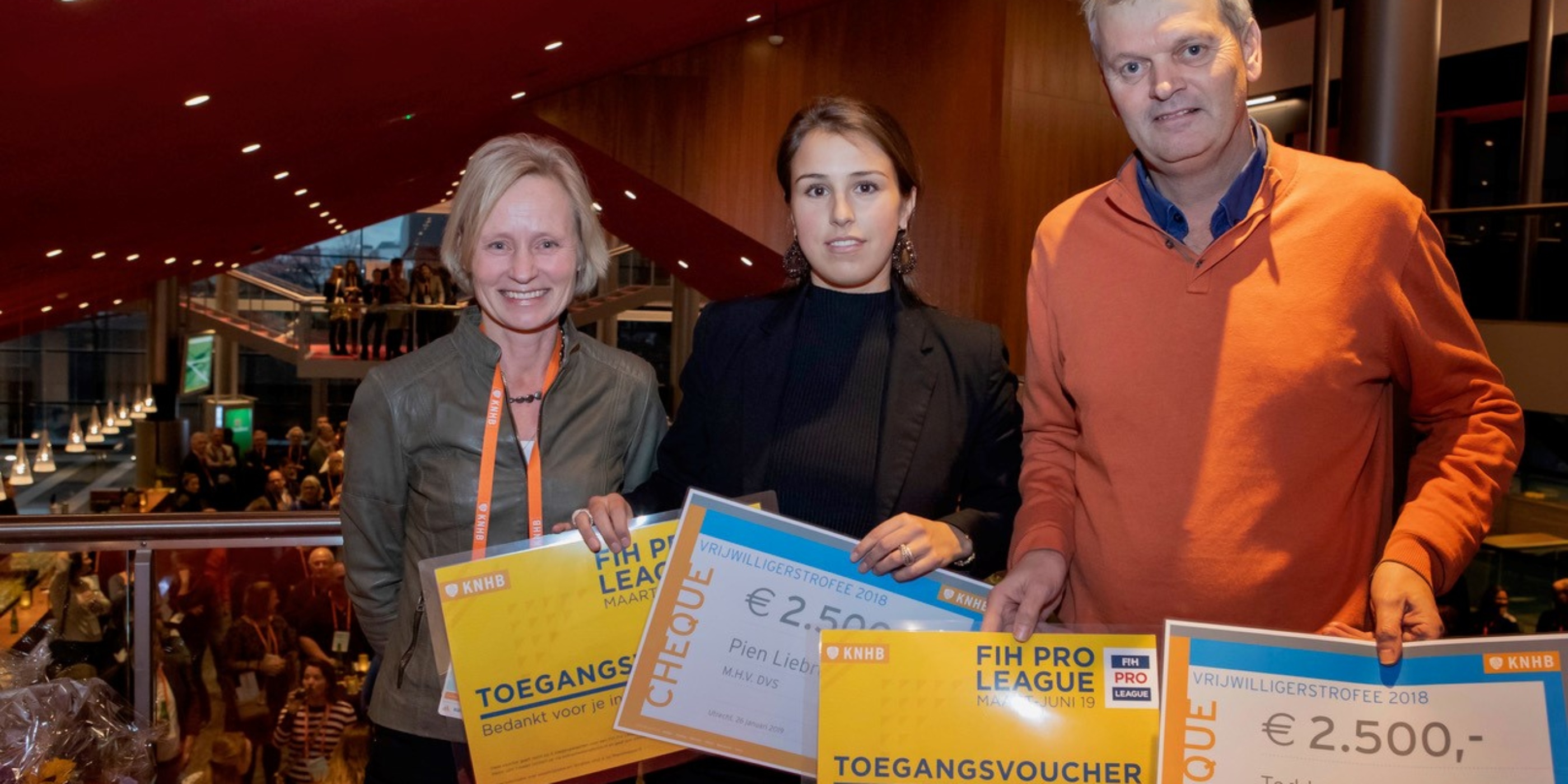 Beiden ontvingen zij een waardecheque voor hun vereniging, en ieder een voucher voor zes toegangskaartjes voor een FIH Pro League wedstrijd(dag) naar keuze. Gefeliciteerd, Pien en Ted!