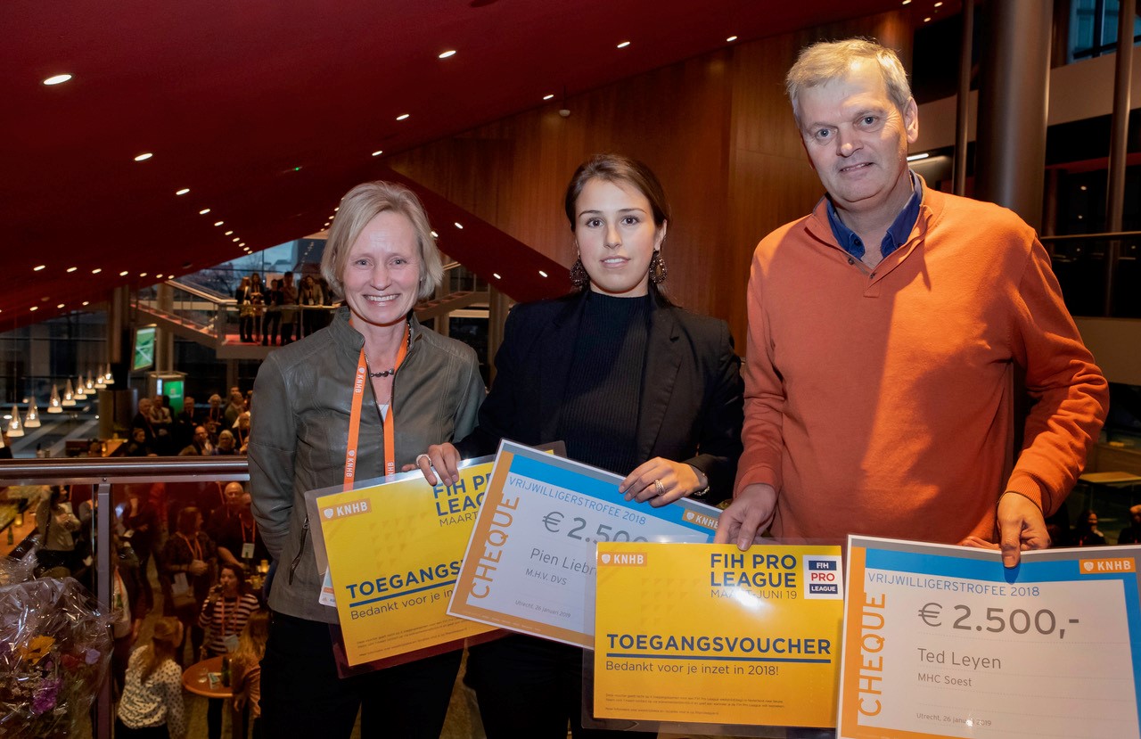 De vrijwilligers van het jaar 2018 zijn geworden: Pien Liebregts (M.H.V. DVS) en Ted Leyen (MHC Soest)