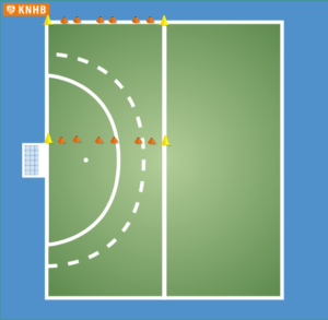 - Onder 11 jaar (huidige 1e jaars D); 8:8 op een half veld afzetten tegen een 9-9 vorm en een 11-11 vorm.