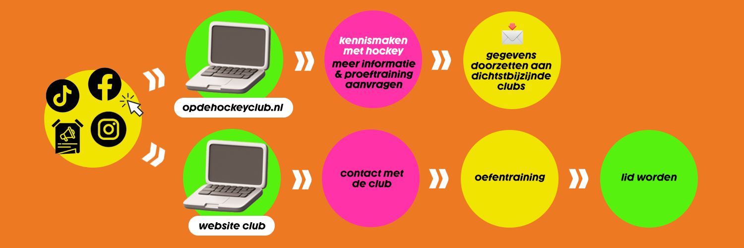 Via een online campagne informeren en interesseren we ouders van potentiële nieuwe jeugdleden. Ouders worden doorverwezen naar opdehockeyclub.nl en kunnen daar hun gegevens achterlaten. De gegevens delen we met dichtstbijzijnde club(s).