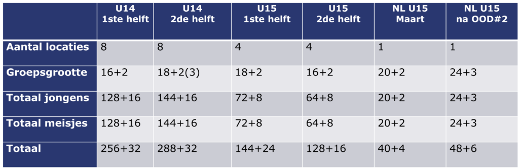 - Vanuit de U15 opleidingsteams en Nederlands U15 kunnen spelers worden toegevoegd.