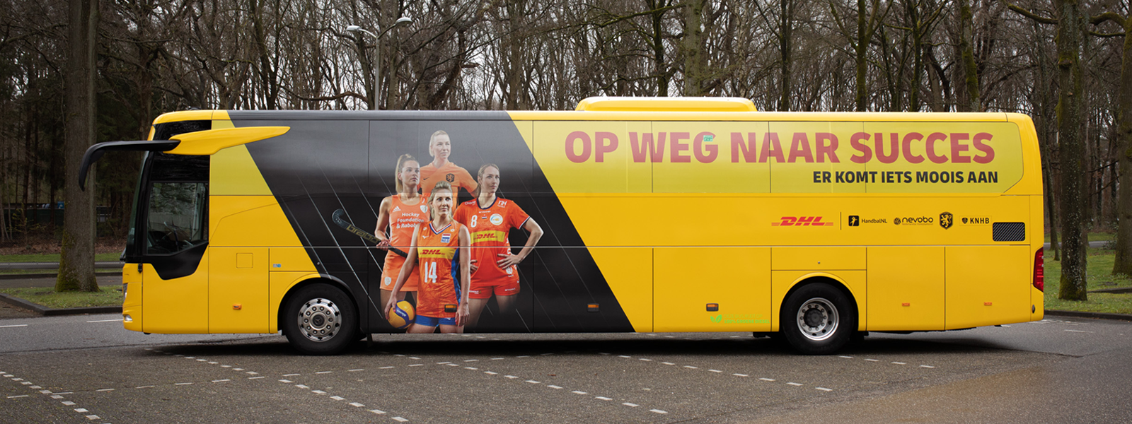 Vervoer in de officiƫle DHL-spelersbus, vanaf jullie eigen hockeyclub